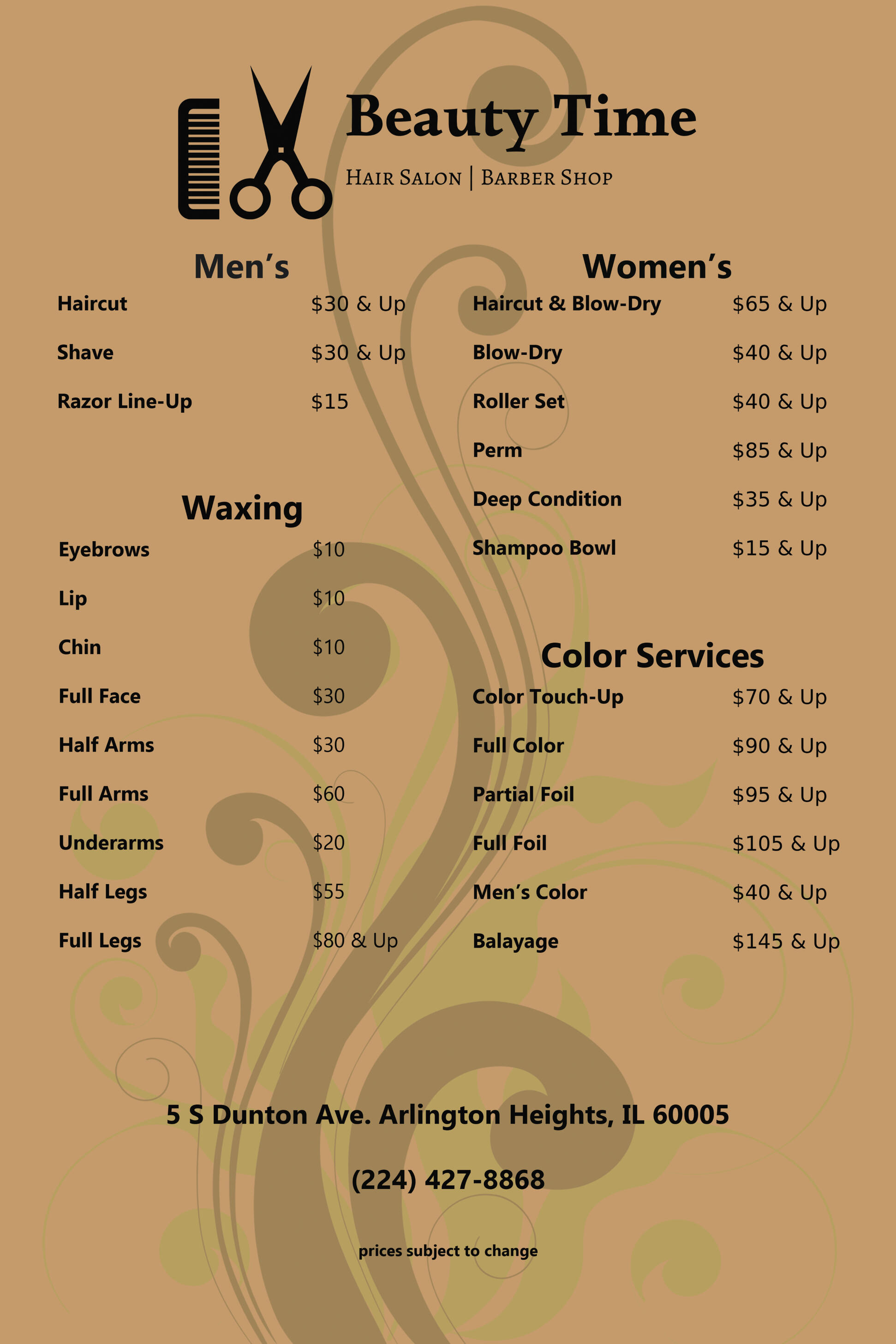 United by our passion to provide a family atmosphere for excellent hair care in Arlington Heights, we opened our doors in 2016. Whether you come in for a new style or a splash of color, we always do our best to make it happen. With over 30 years combined experience, we pride ourselves on helping your natural beauty shine! From our family to yours, thank you for choosing Beauty Time!